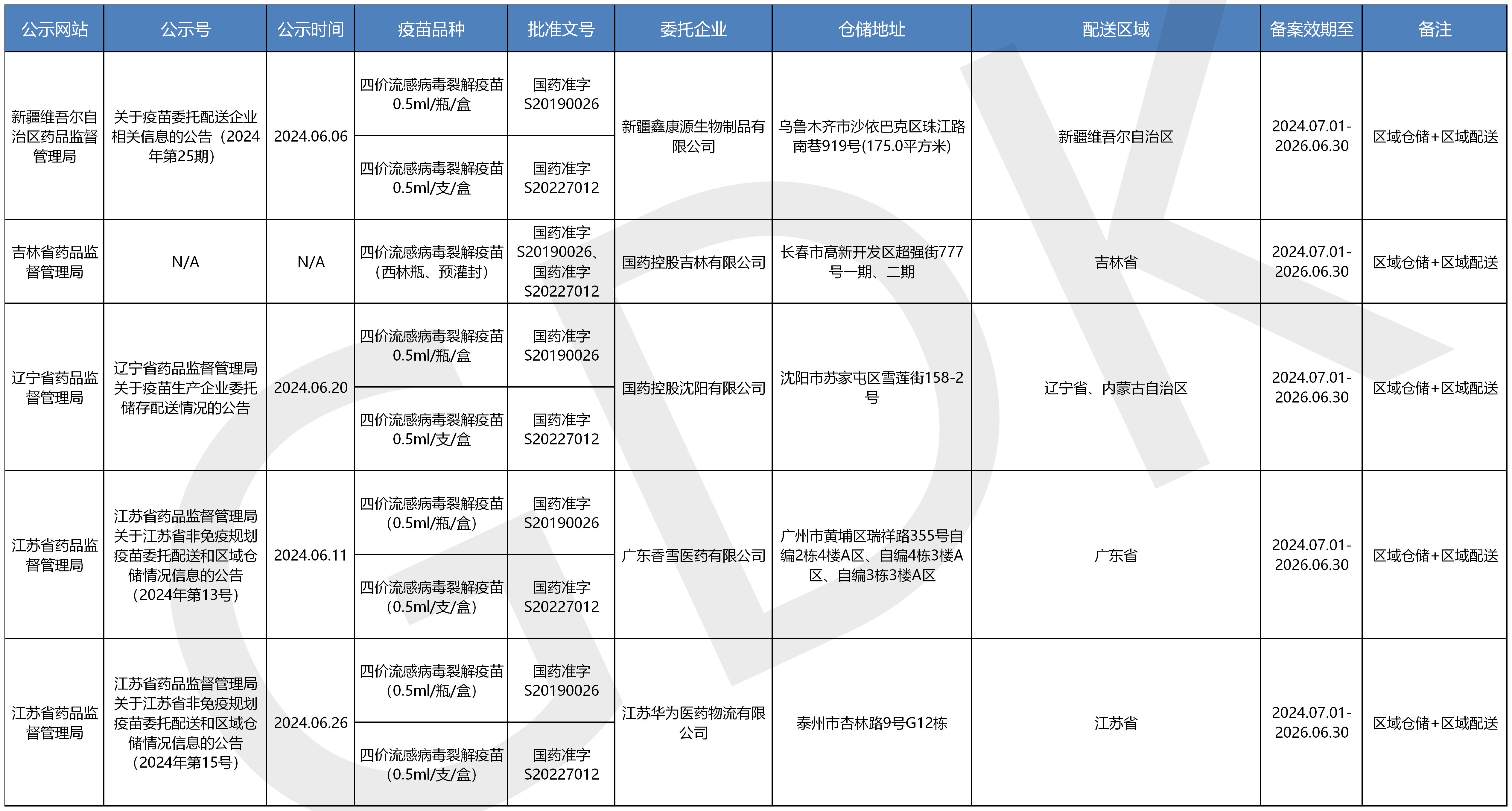 疫苗委托冷鏈儲存、配送企業(yè)信息公開(kāi)