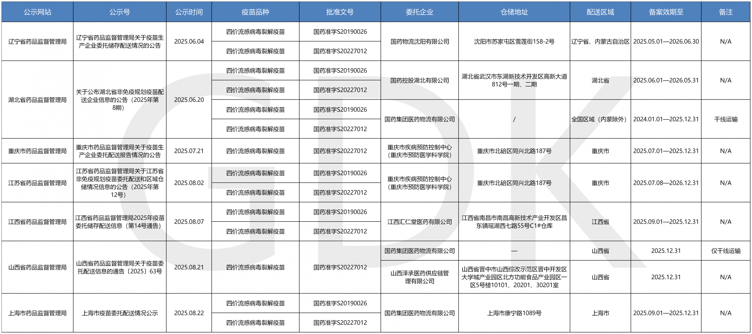 疫苗委托冷鏈儲存、配送企業(yè)信息公開(kāi)